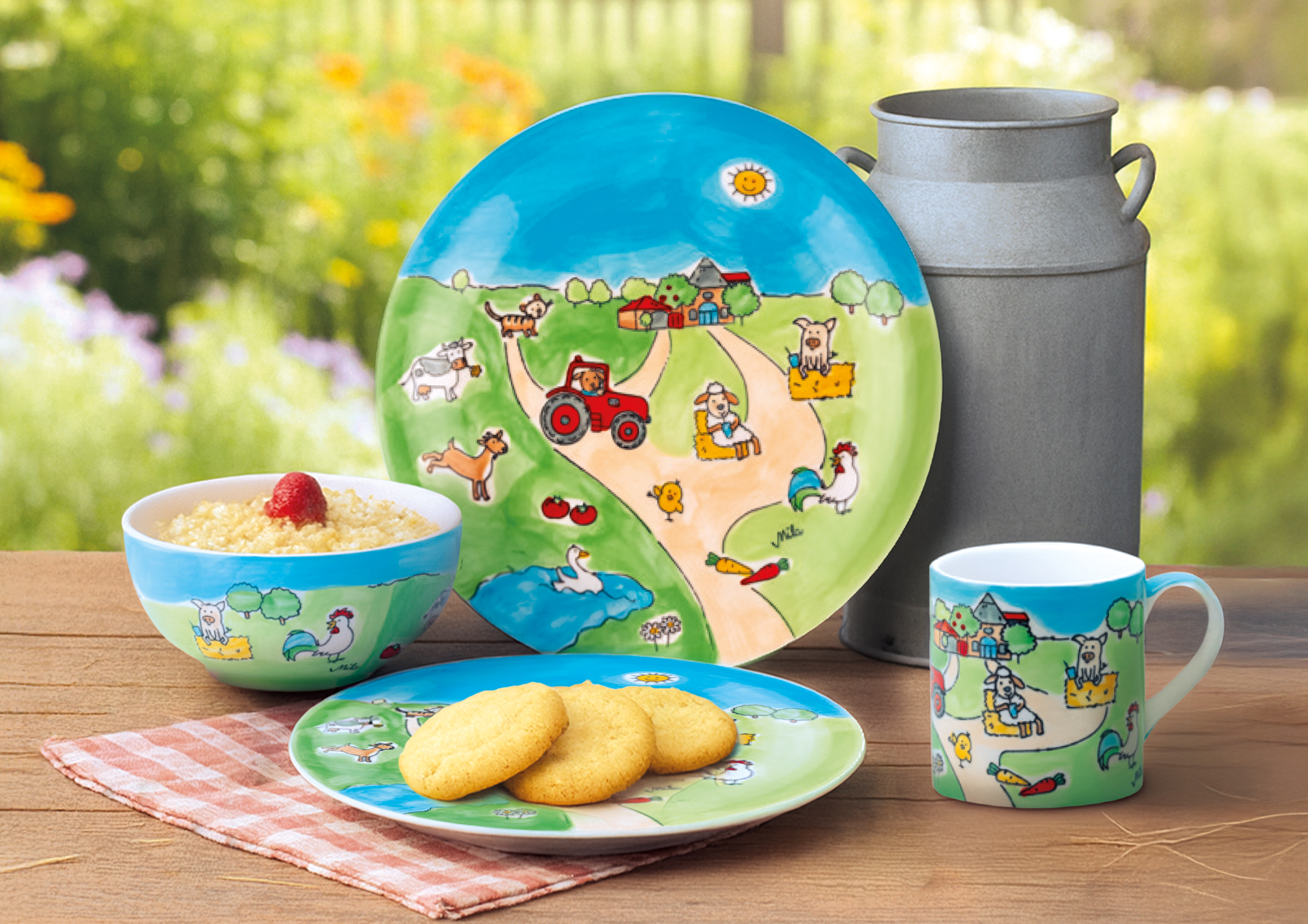 | Größe Geschirr: | Kinderschale: 6 cm hoch, Ø 14 cm |